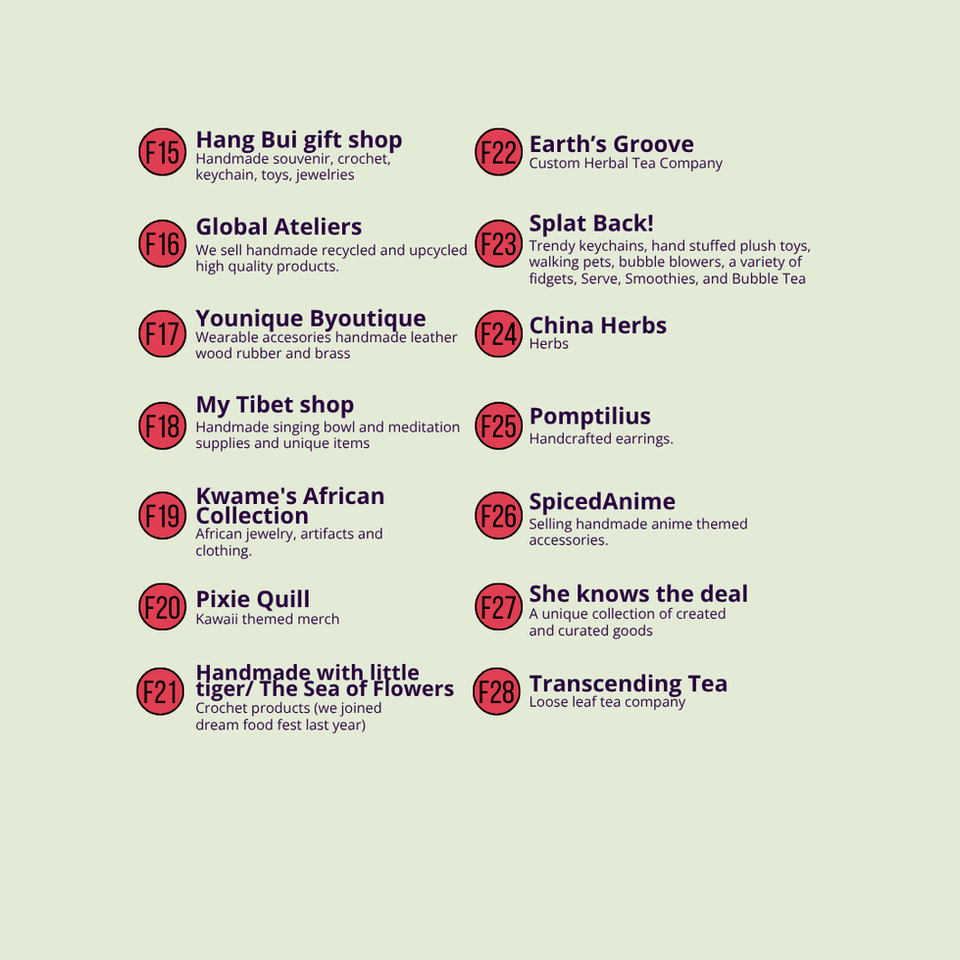 40+ merch vendors featuring crafts, gifts, and festival goods